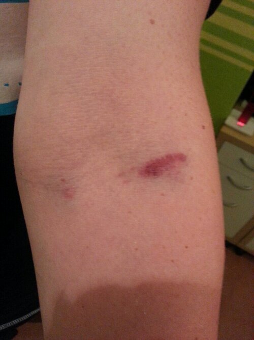 Da ich bei zwei Ärzten war, hab ich halt zwei blaue Flecken.
