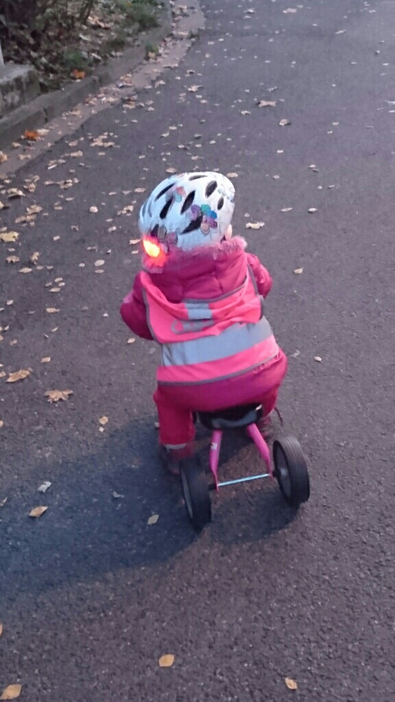 Die dunkle Jahreszeit hat begonnen und meine Tochter hat ihre Liebe zum Fahren mit dem Pukilino entdeckt .
