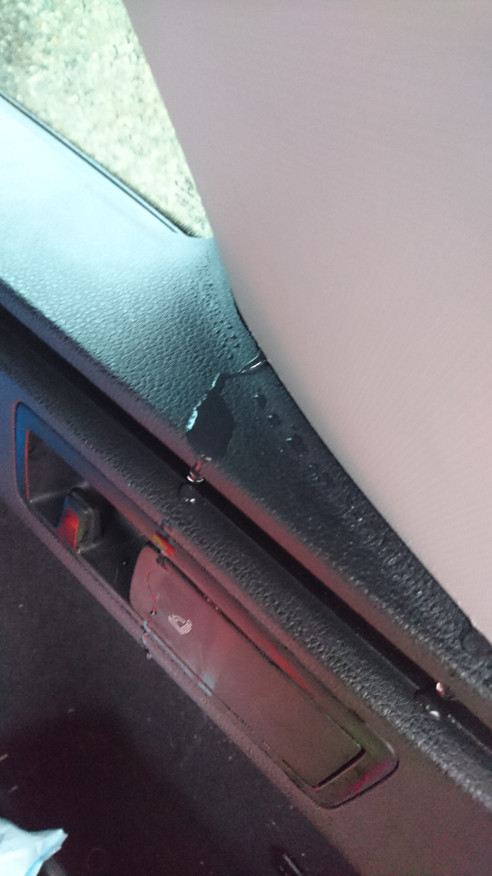 Dort angekommen wurde das Auto in die Halle gefahren und der Meister stellte fest das der komplette Himmel im Bereich des Kofferraumes nass ist.