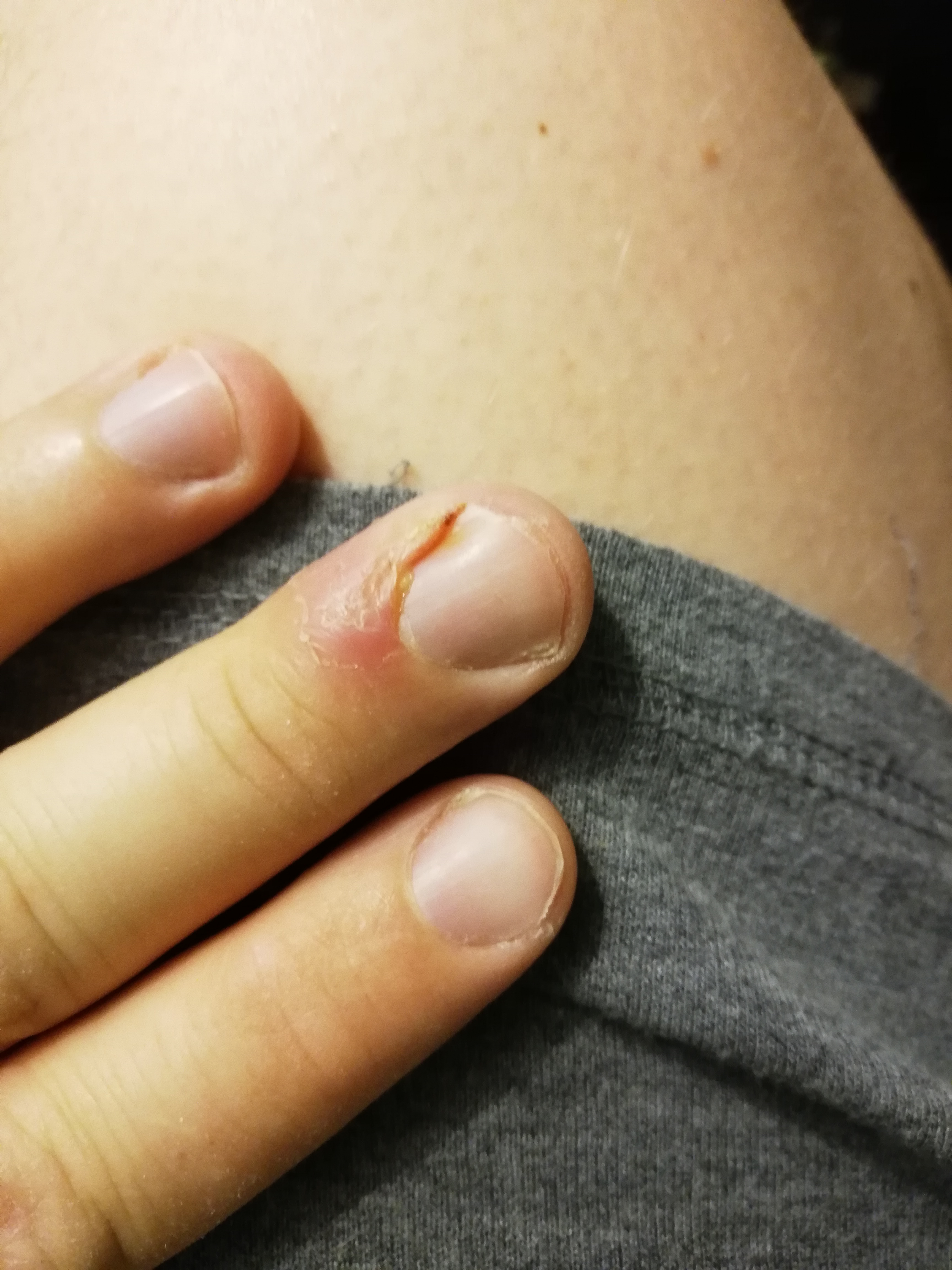 Ich weiß noch immer nicht was ich gemacht habe das sich mein Finger so entzündet hat, aber es besser geworden.