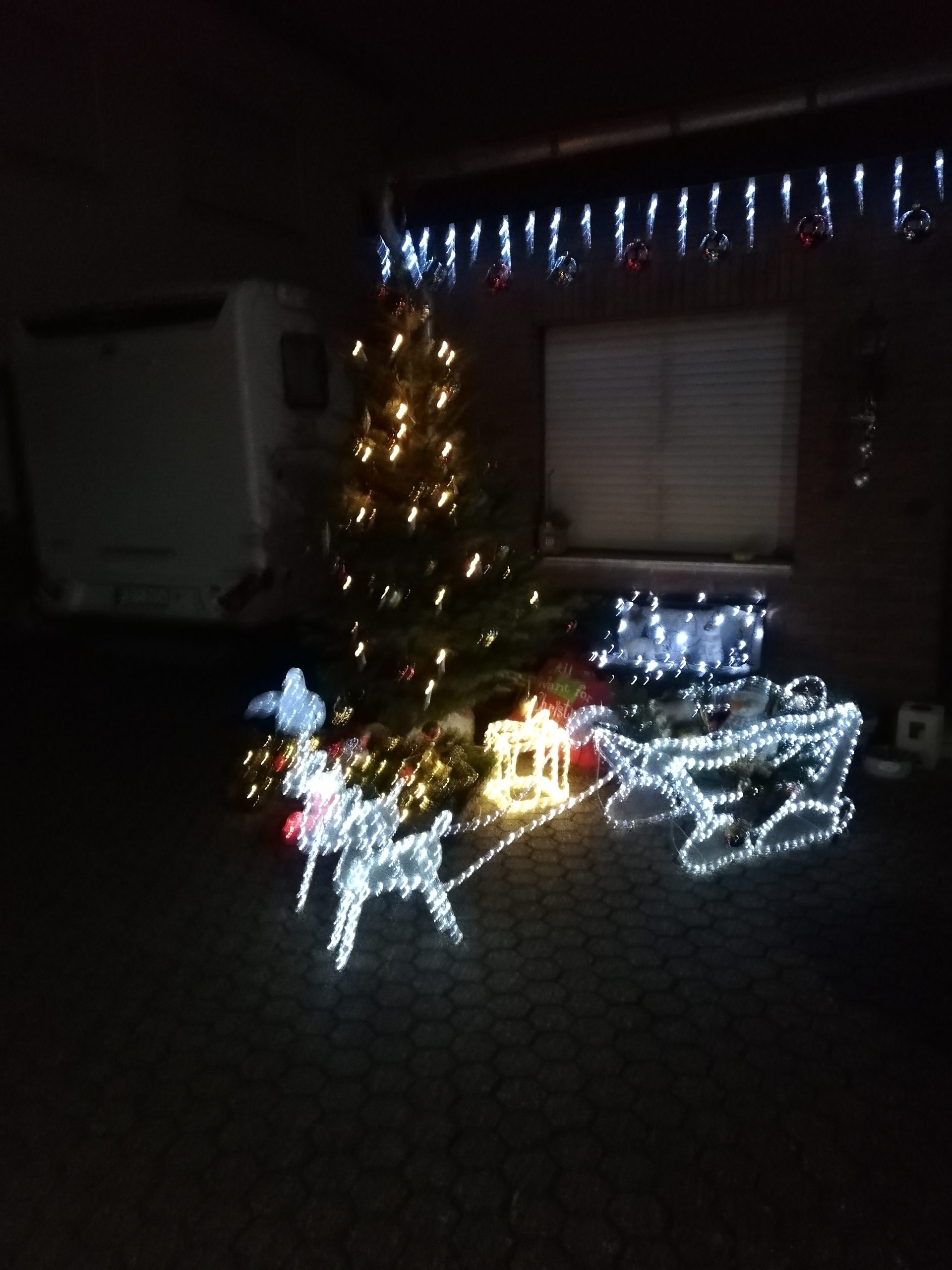 Meine Frau hat unsere Fenster weihnachtlich dekoriert.