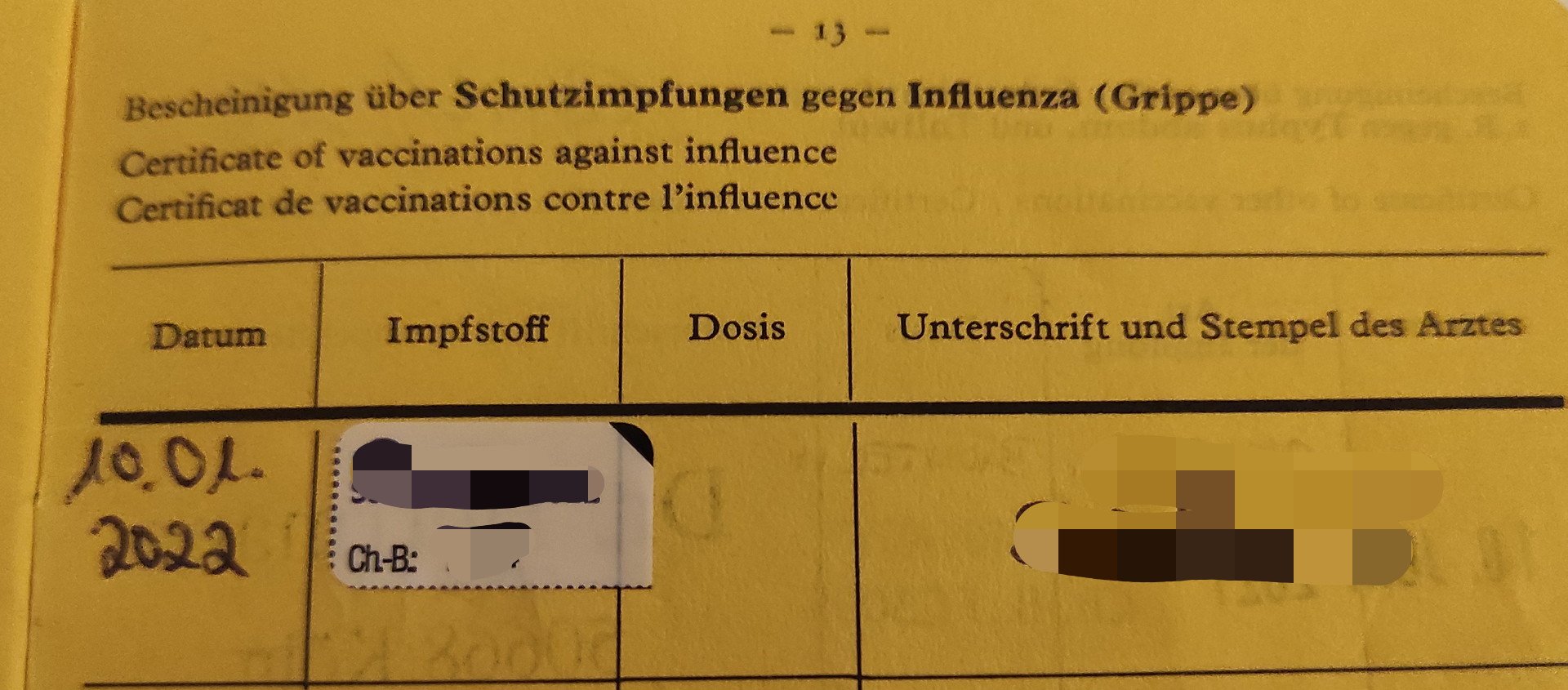 Nämlich Grippe, damit sie mich, wenn ich sie bekomme nicht ganz dahin reißt habe ich mich heute gegen Grippe impfen lassen.