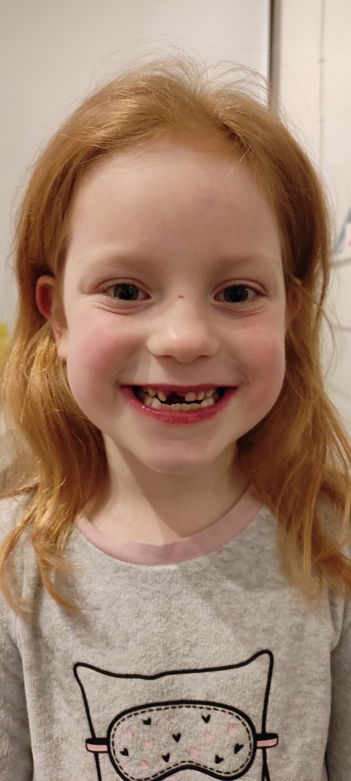 Da es der erste Zahn aus dem Oberkiefer ist kommt in der nächsten Nacht die Zahnfee.