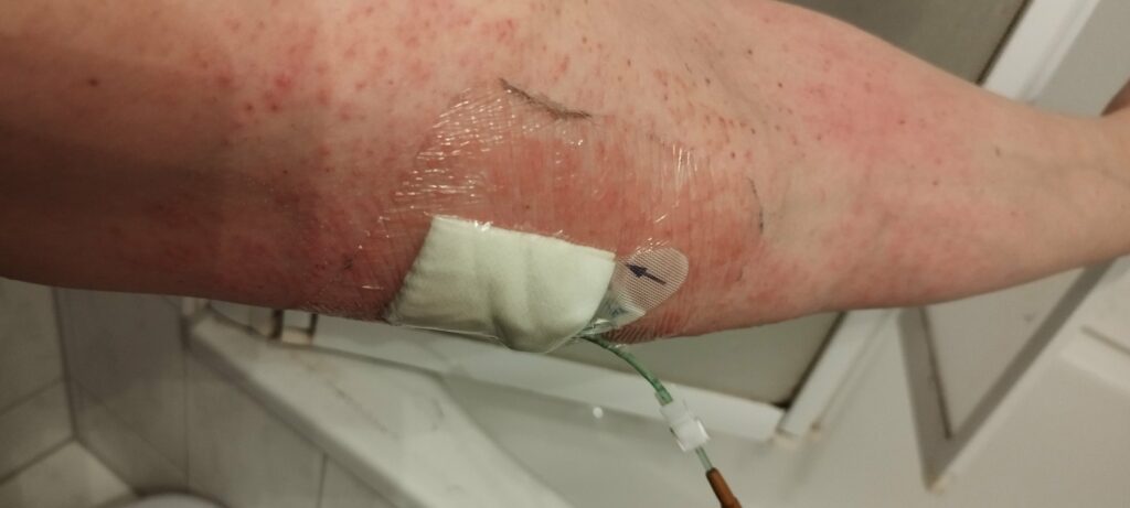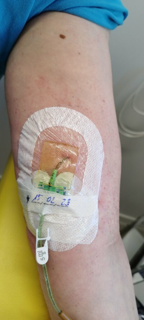 Ich habe meine PICC-Line am ersten Februar bekommen und habe mich damit arrangiert. Auch wenn ich wie hier geschrieben froh bin wenn ich sie wieder los bin.