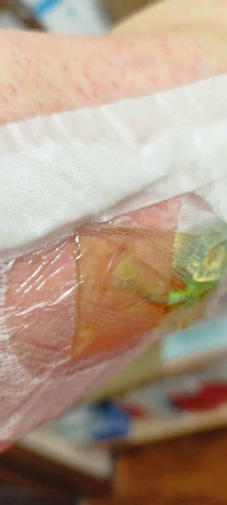 Am Mittwoch, war ich zum regulären Pflasterwechsel in der Klinik. Als das alte Pflaster runter war wurde das Unheil sichtbar.