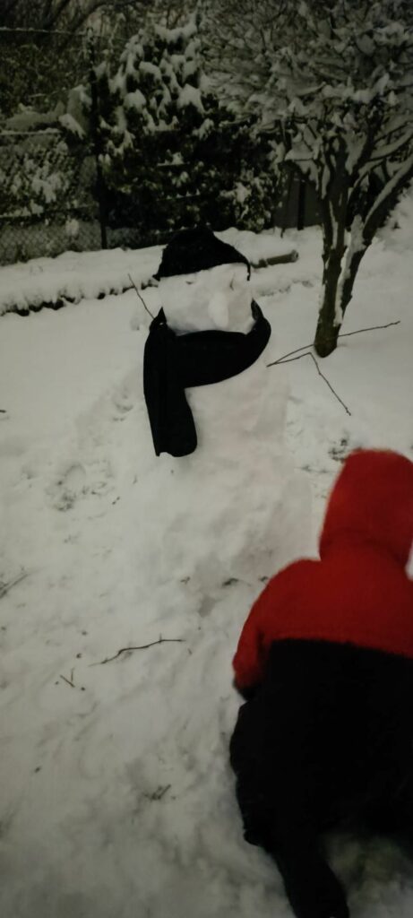 Bis meine Kinder wie ein Tornado durch den Garten gefegt sind und einen schönen Schneemann gebaut haben.