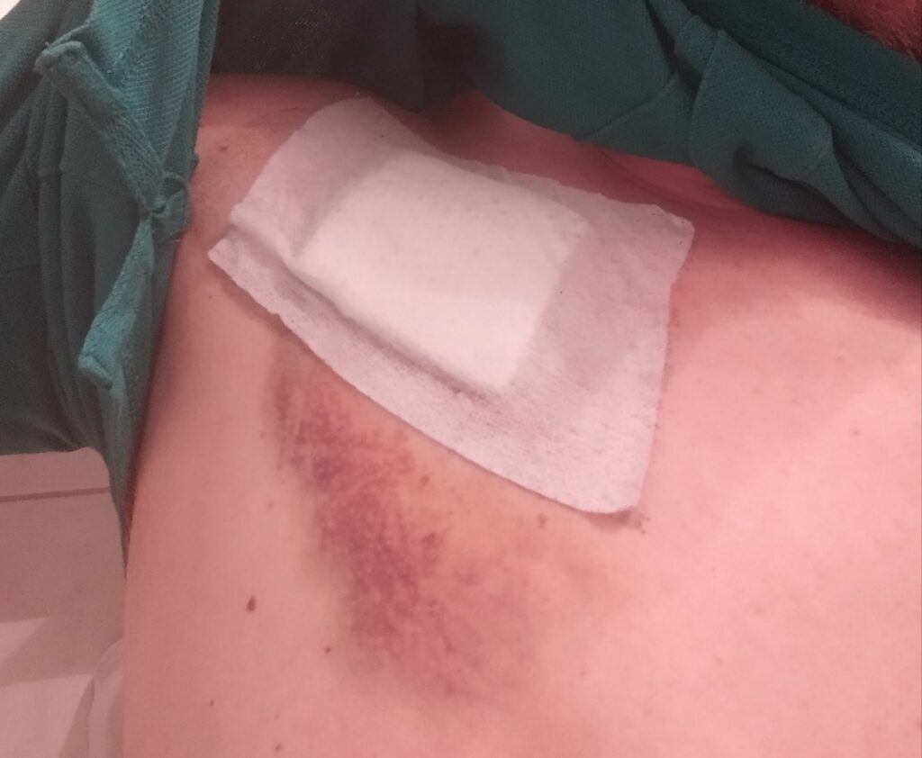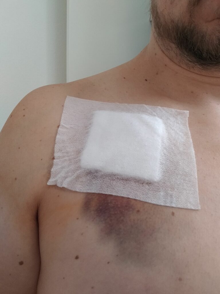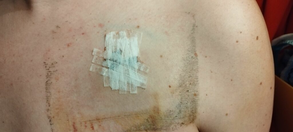 Das von meinem Hausarzt geklebte Pflaster hat sich immer weiter gelöst. Meine Frau hat das Pflaster abgemacht. Ich habe die Möglichkeit genutzt und habe ein Foto machen lassen.