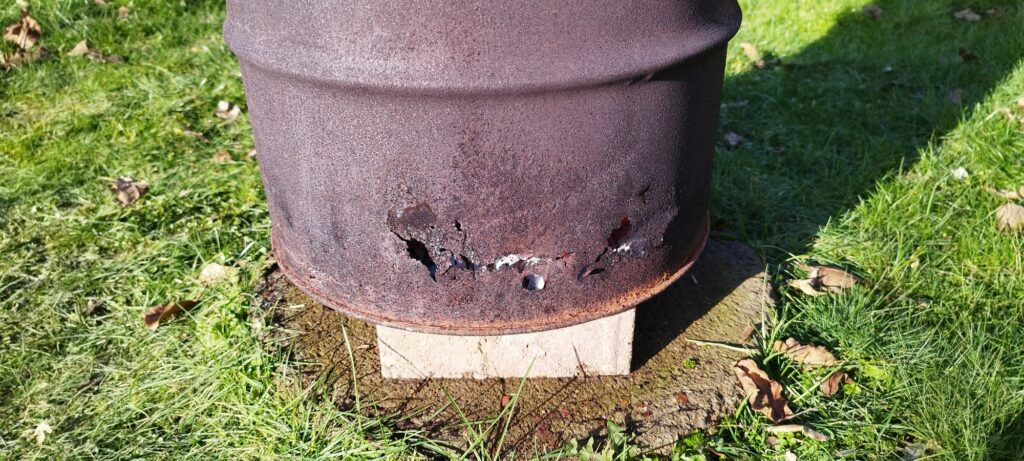 Beim anfeuern musste ich feststellen das die Tonne durchgebrannt ist.