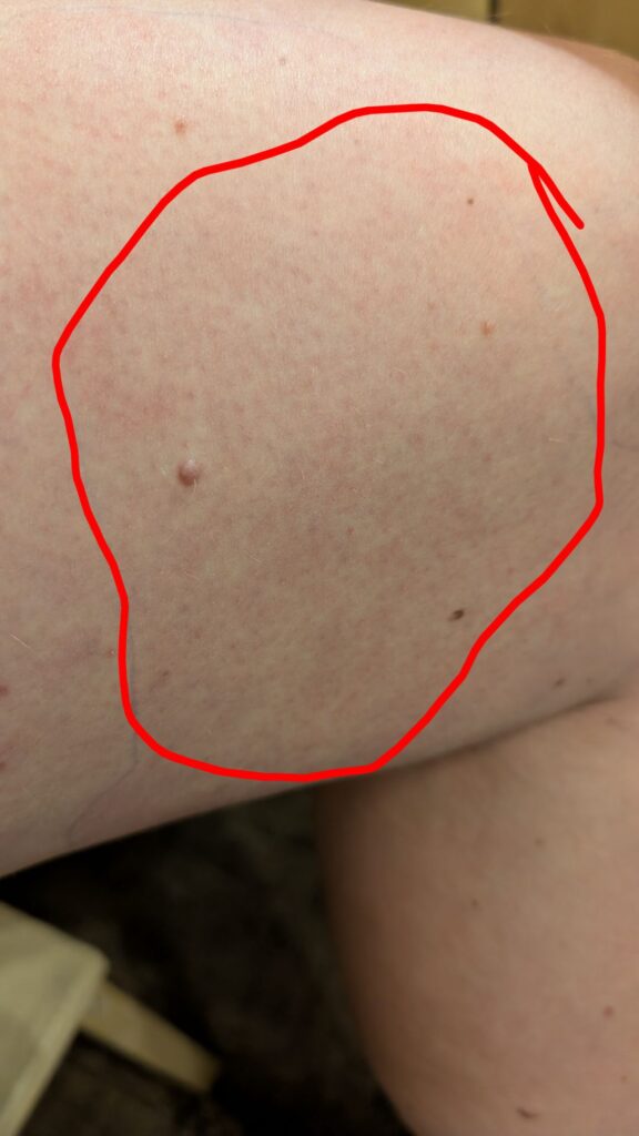 Gestern Abend habe ich an der Innenseite meines linken Oberschenkel einen Fleck festgestellt.