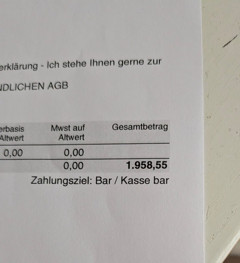 Es sind so zwar immer noch ~1400 Euro aber, dann ist es erledigt.