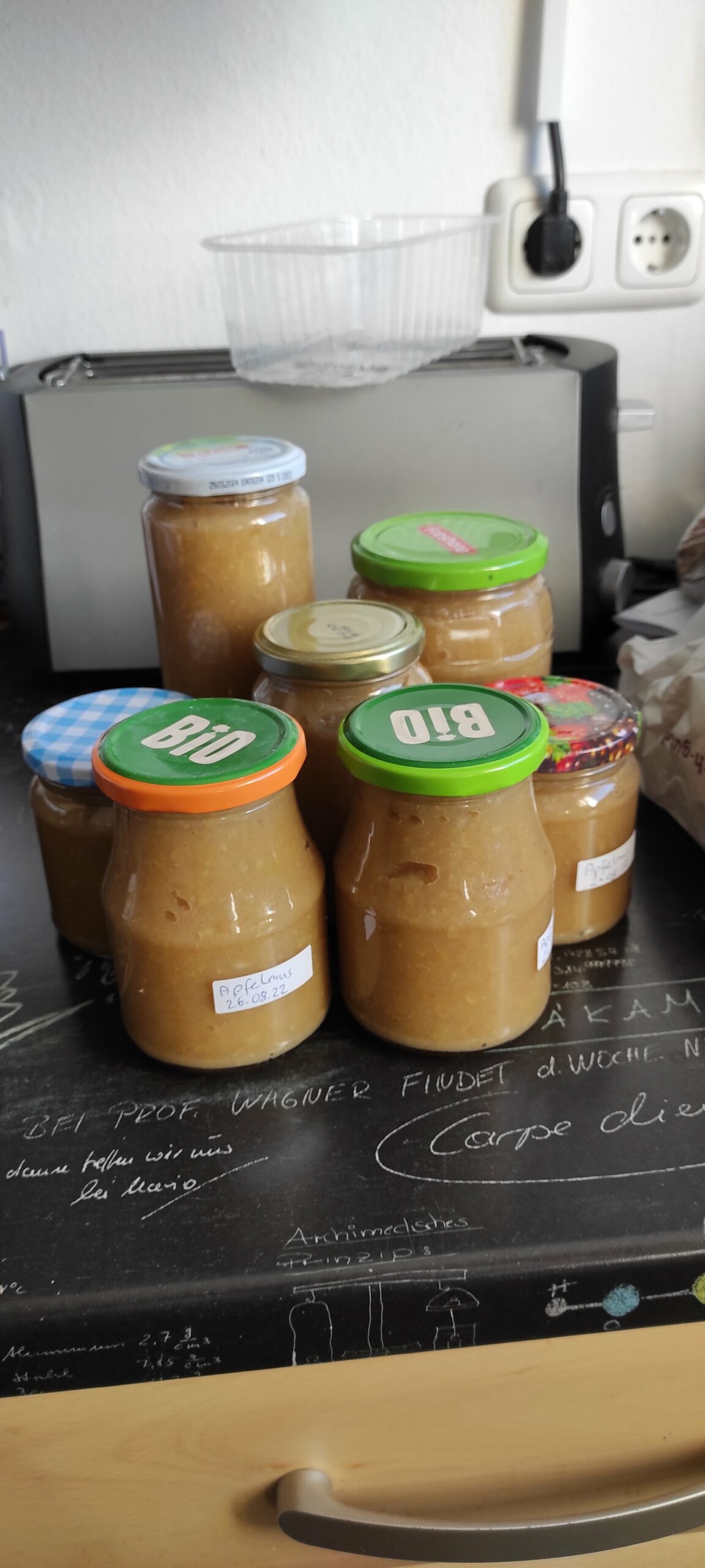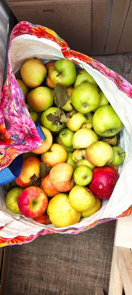In der Tüte sind 13 kg Äpfel. 7 kg hat meine Frau schon zu Apfelmus und Apfelkompott verarbeitet.