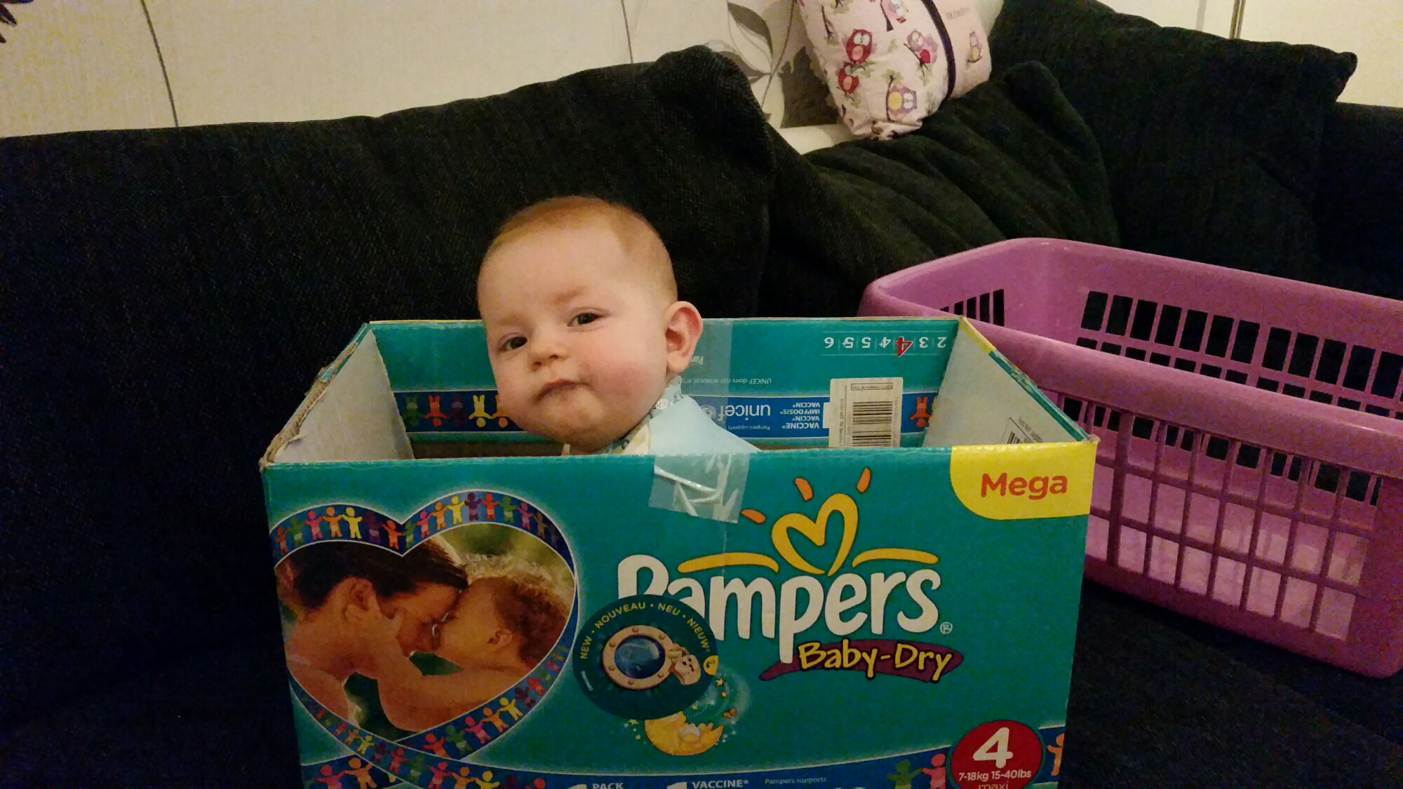Letzten Sonntag setzte ich sie in einen leeren Pamperskarton und sie fand es sehr interessant.