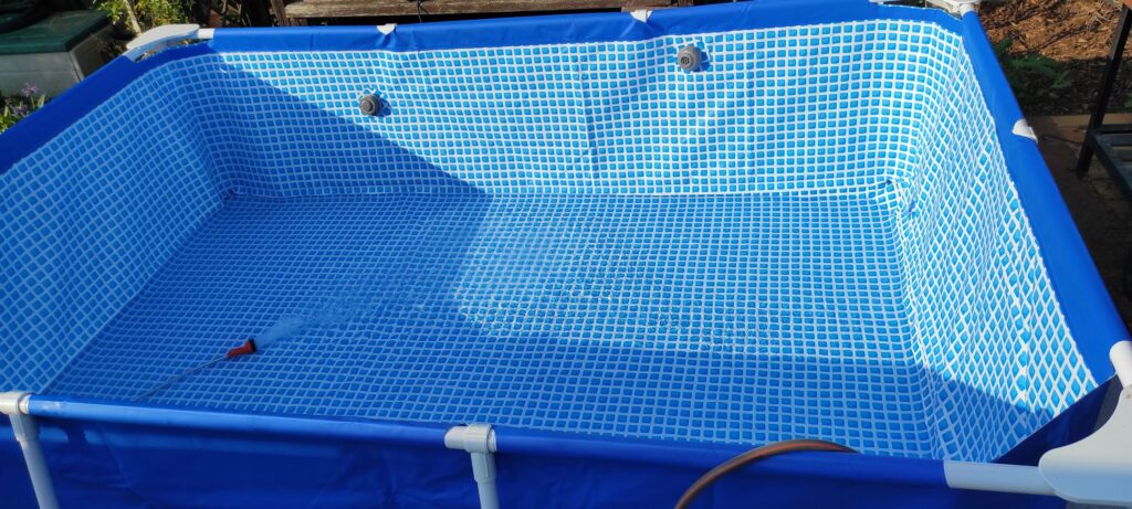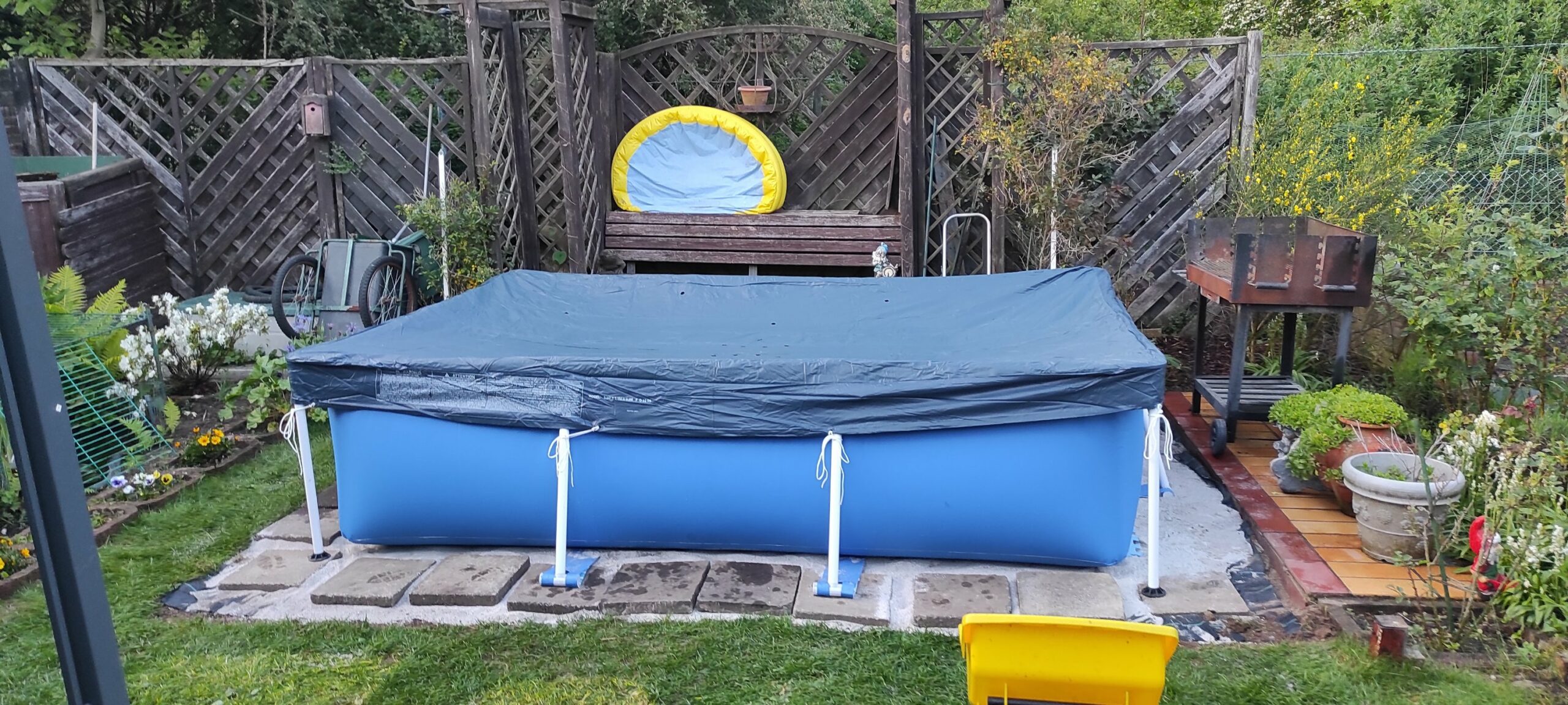 Von unserer Nachbarin bekommen wir noch eine Solarfolie mit der das Wasser durch die Sonne aufgeheizt wird.