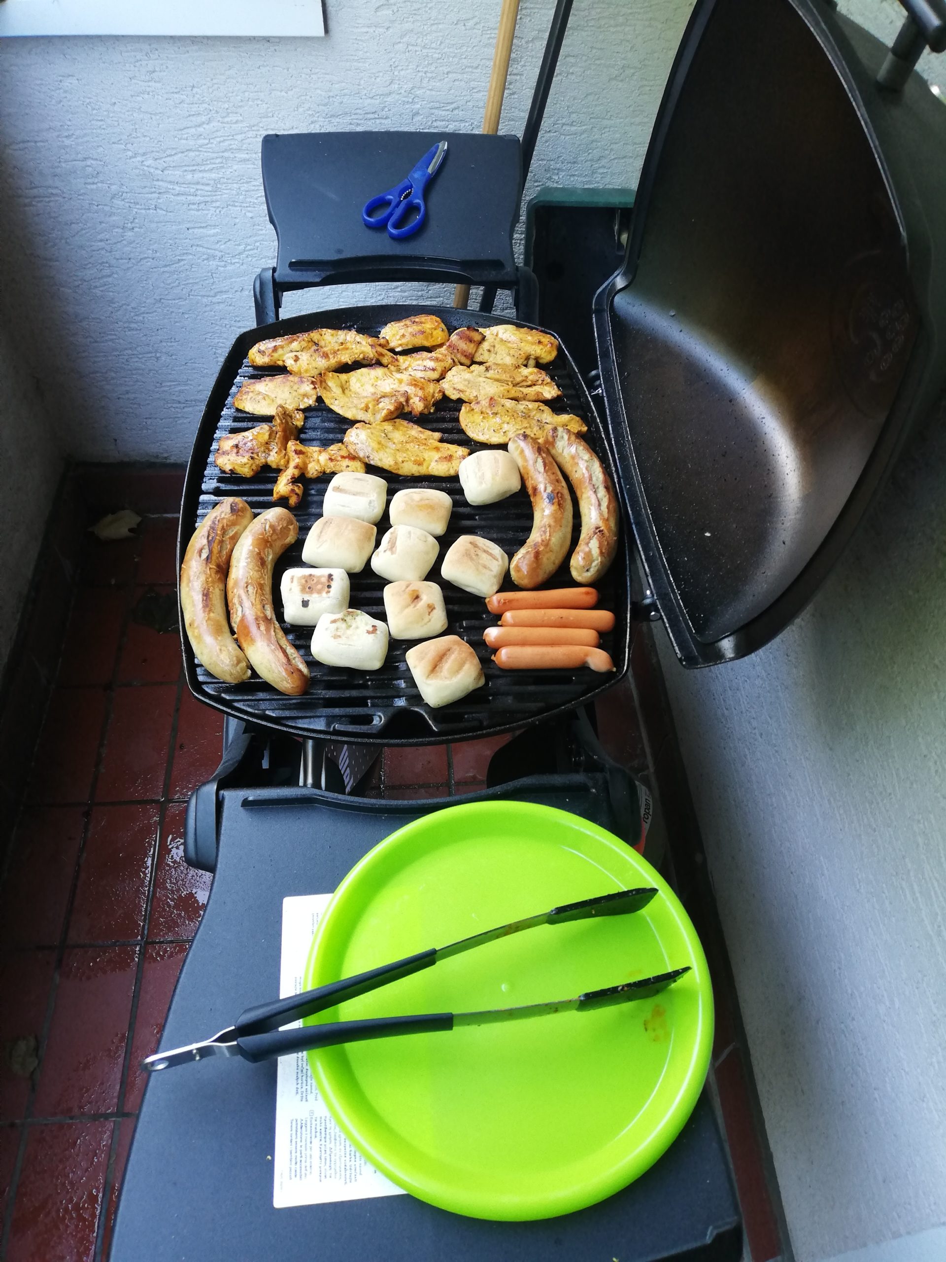 Das Wetter der letzten Tage war nicht so toll. Heute ist es zumindest abends trocken ich habe unseren Gasgrill aus dem Keller hoch geholt und auf dem Balkon eine Grillerchen gemacht.