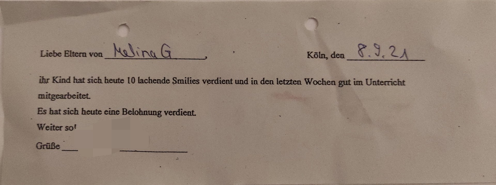 Gestern lag eine schöne Mitteilung auf dem Esstisch.