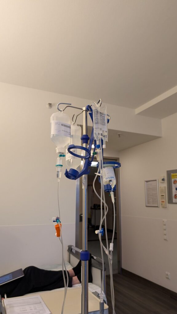 Zum anderen ist mir übel, wofür ich heute Abend nochmal Granisetron über die Vene bekommen habe.