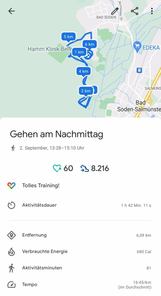 Das waren die ersten 6 km an einem Stück. Ich war selber überrascht als ich die Kilometerzahl gesehen habe. Denn es kam mir garnicht so viel vor.