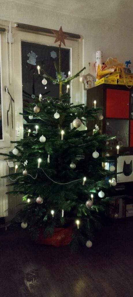 Heute Abend ist unser Weihnachtsbaum eingezogen.