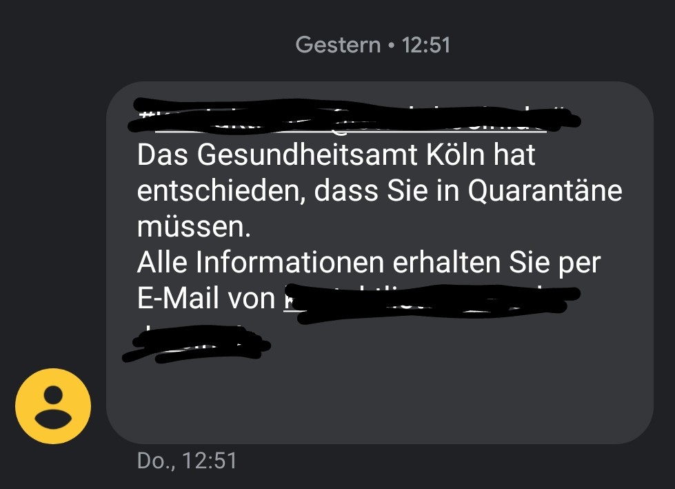 Eine unserer Auszubildenden hatte sich infiziert und zwei meiner Kollegen und mich als Kontaktpersonen angegeben.
