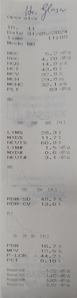 Meine Plättchen sind etwas gestiegen, die weißen Blutkörperchen aber auch.