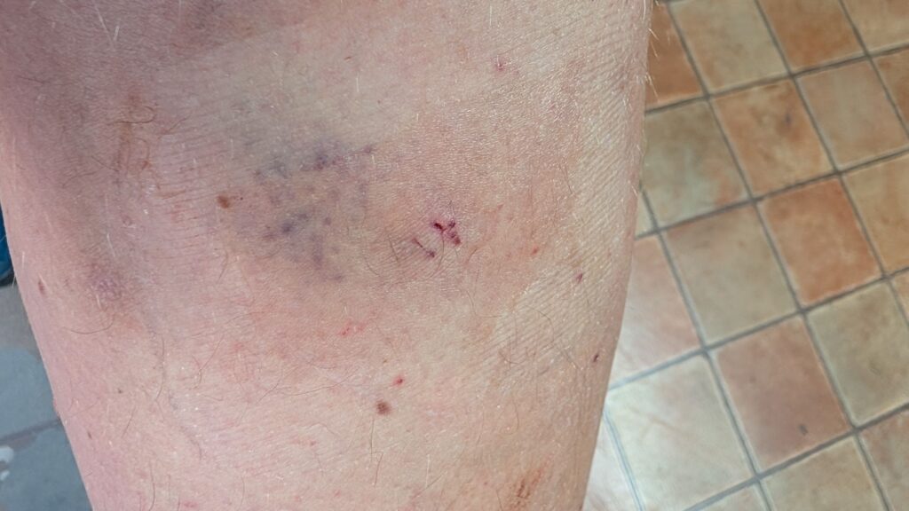 Das was da in meinem Bein ist, ist meinem Gefühl nach, nach der Therapie von letztem Freitag kleiner geworden. Was bei mir böse Erinnerungen an den Tumor in Augenlid weckt. Da war es auch so das der nach Therapiegabe kleiner wurde und danach wieder anschwoll.