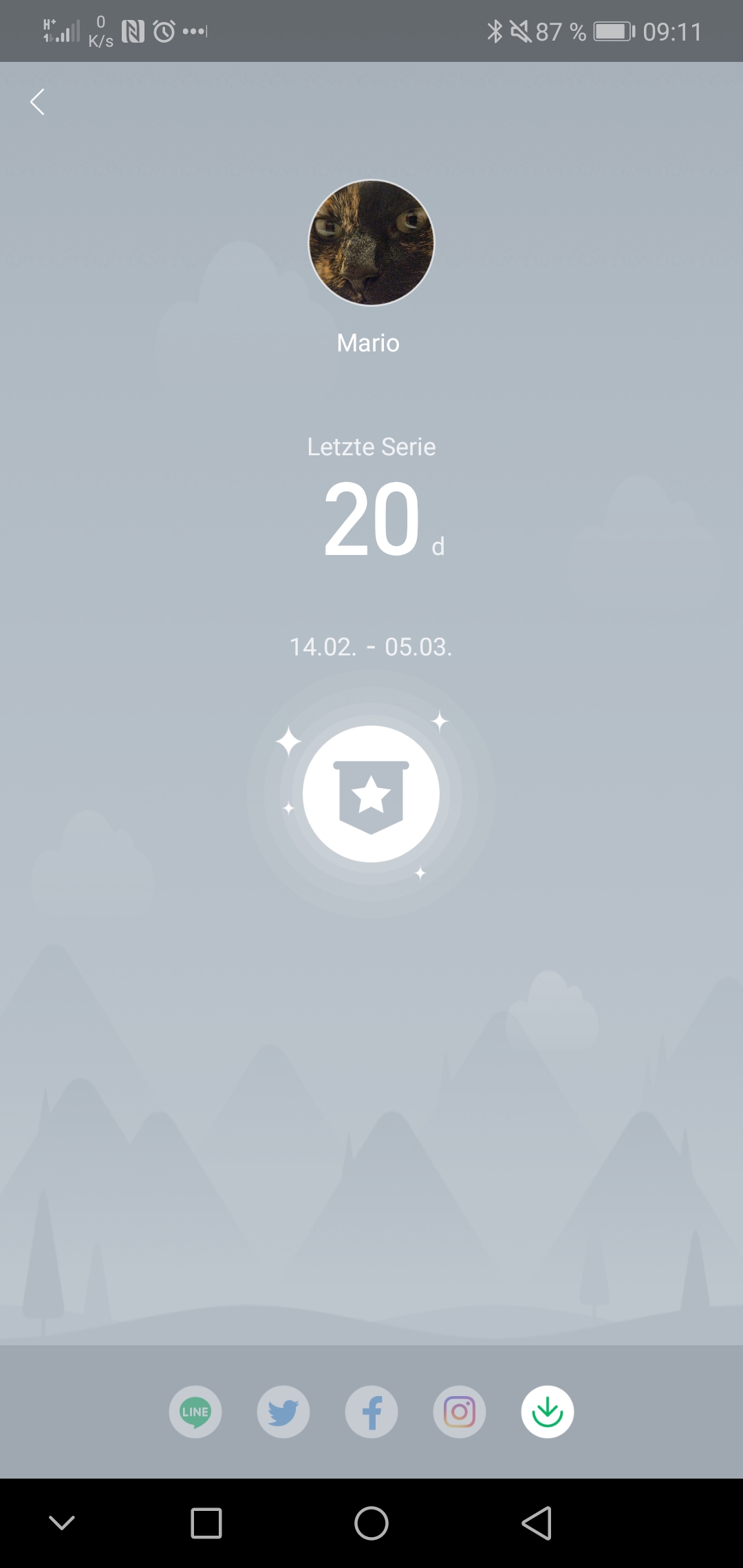 Leider wurde meine Serie gestern unterbrochen. Bis gestern habe ich 20 Tage lang mindestens meine Schrittzahl erreicht.
