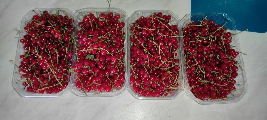 Vorgestern ist meine Frau hingegangen und hat unsere Johannisbeerstrauch geplündert.