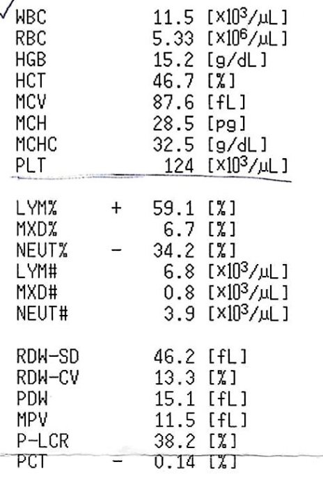 Gegen die Trombospende spricht leider der zu niedrige Trombowert bei mit 124000, dieser muss mindestens 300000 sein. Und der zu hohe LYM% Wert, der nicht höher 42% sein darf und der WBC nicht höher 10.