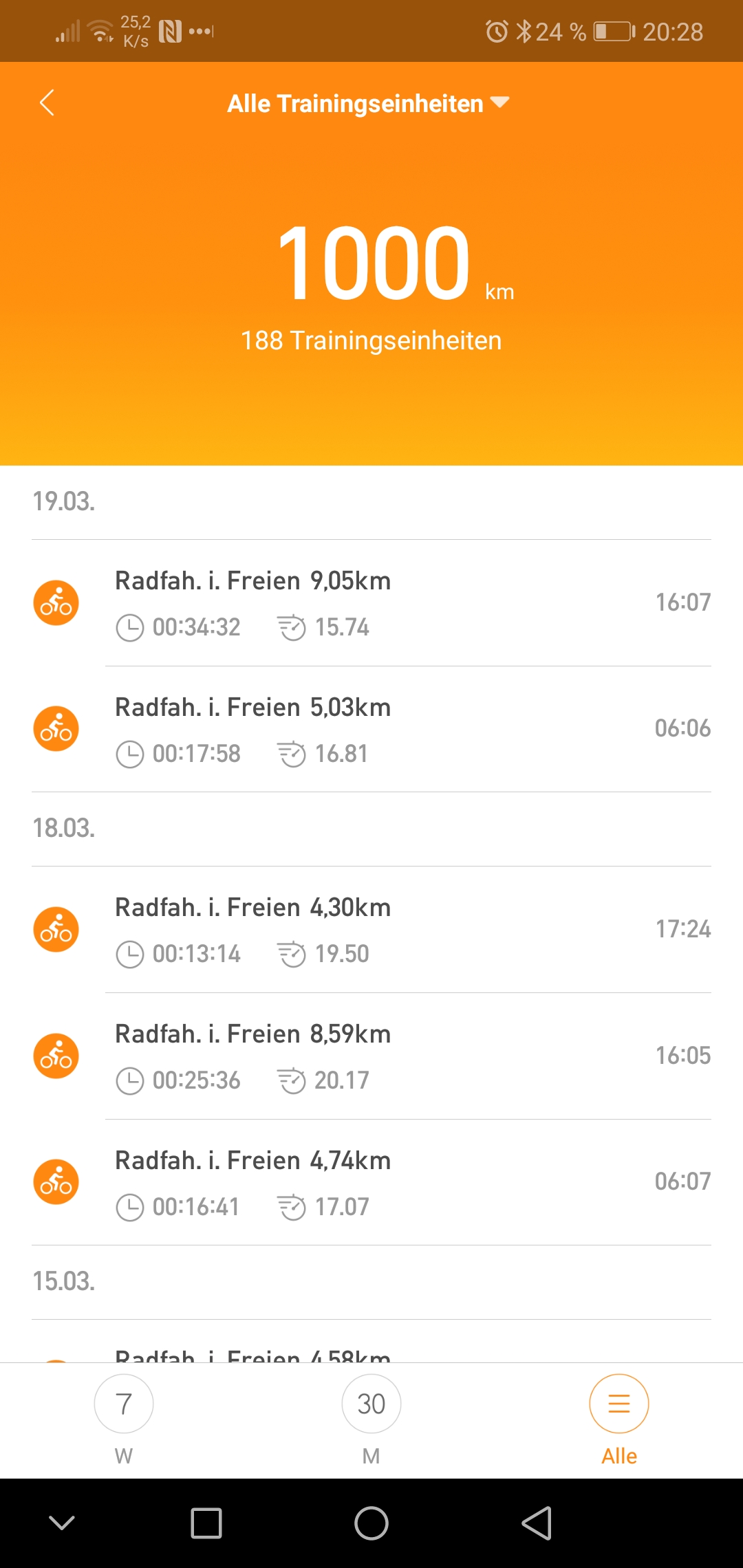 Ich habe heute den 1000sten Kilometer mit meinem Fahrrad gefahren. Und es sind Kilometer die ich ohne Hilfe eines Motors oder so gefahren bin.