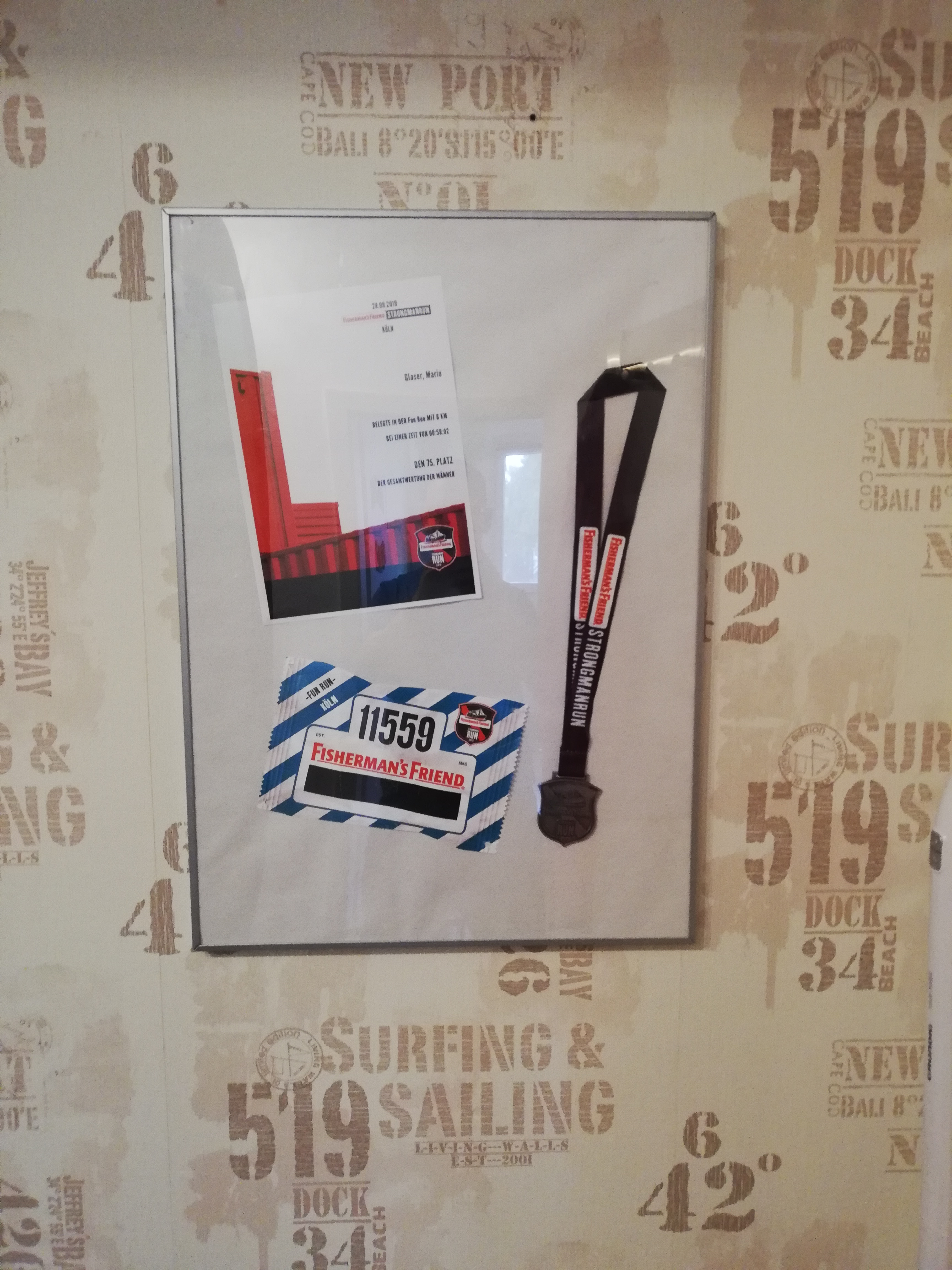 Auf meine Leistung beim Strongman FunRun bin ich so stolz das ich meine Urkunde, meine Startnummer und die Medaille eingerahmt habe.