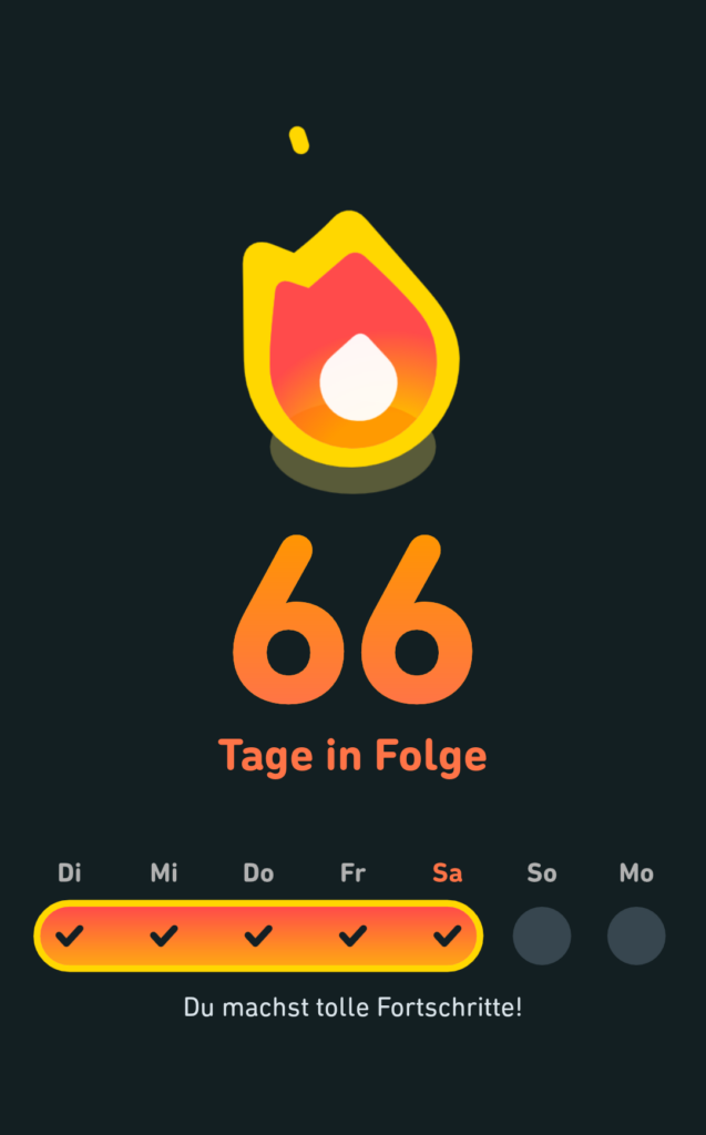 Heute morgen ich den 66. Tag in Folge meine Lektion abgeleitet.