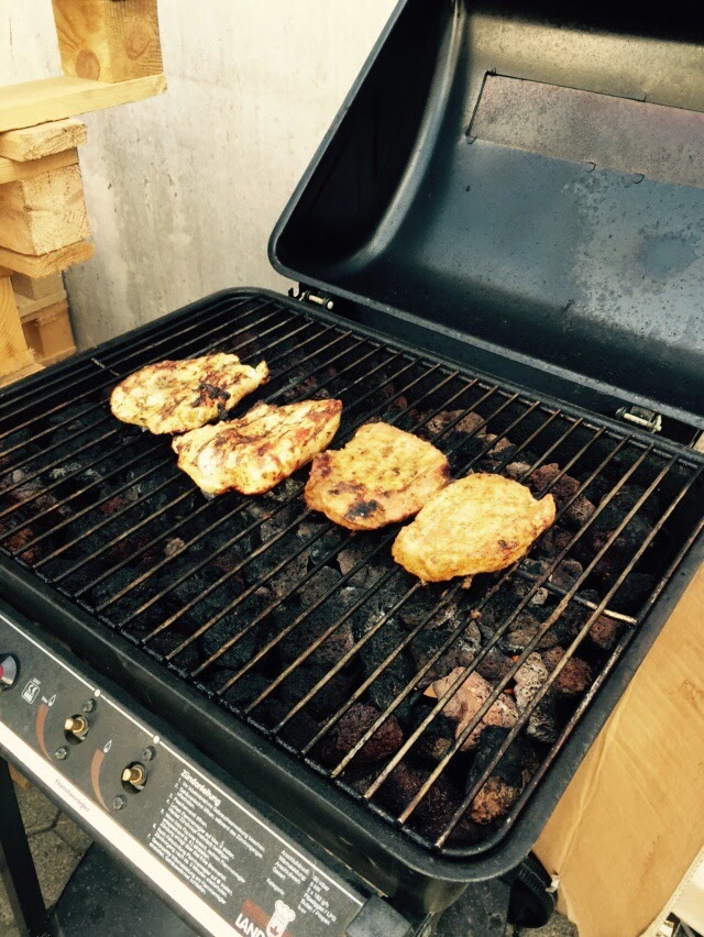 Begonnen haben wir damit das wir Hähnchenfleisch ohne Marinade oder ähnliches gegrillt haben und einfach nur ein Brötchen dazu gegessen haben.