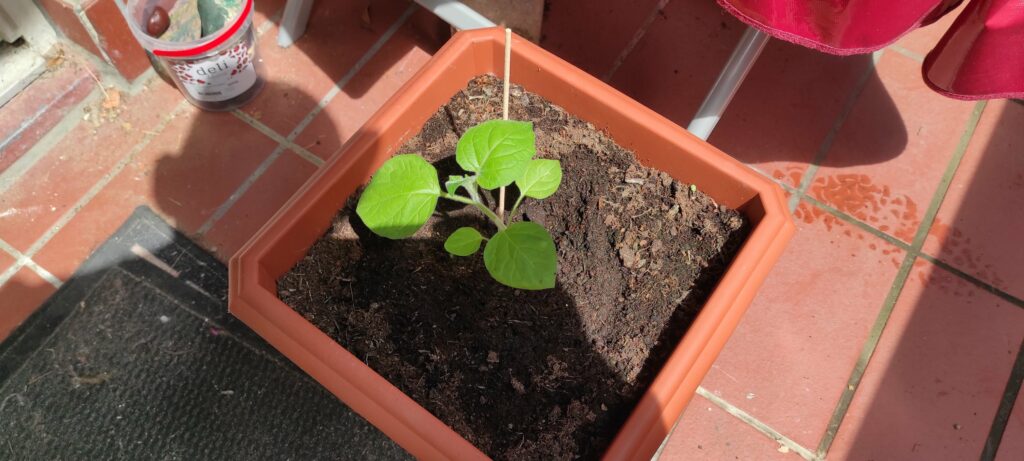 Sobald die Pflanzen etwas größer bzw „stabiler“ sind nahmen wir sie mit in den Garte und pflanzen sie in die Beete aus.