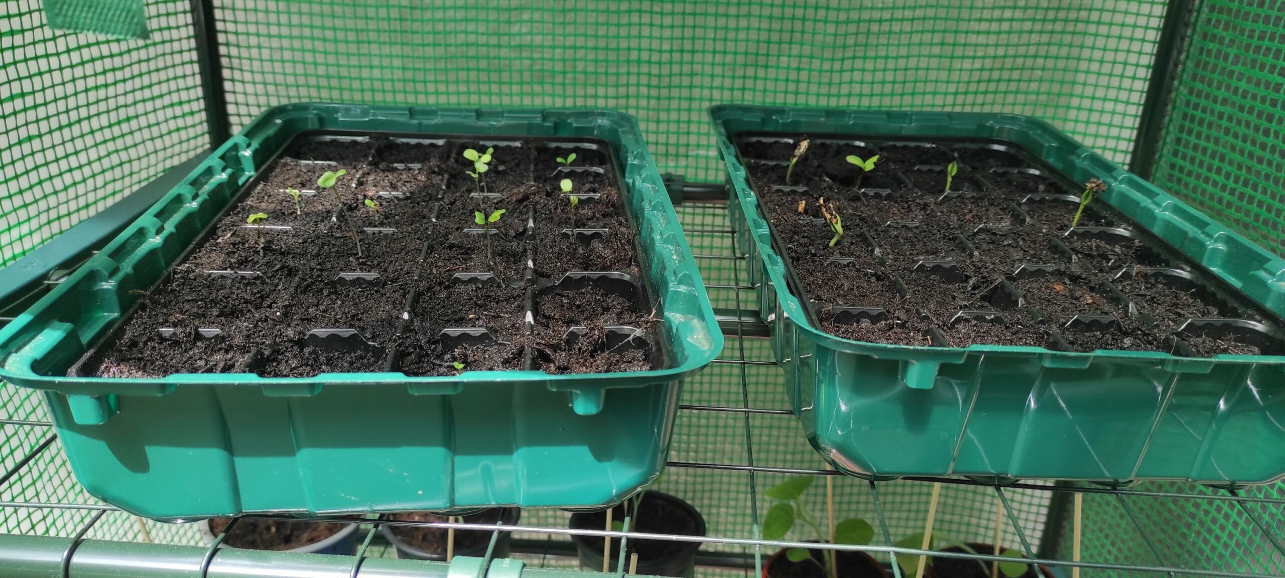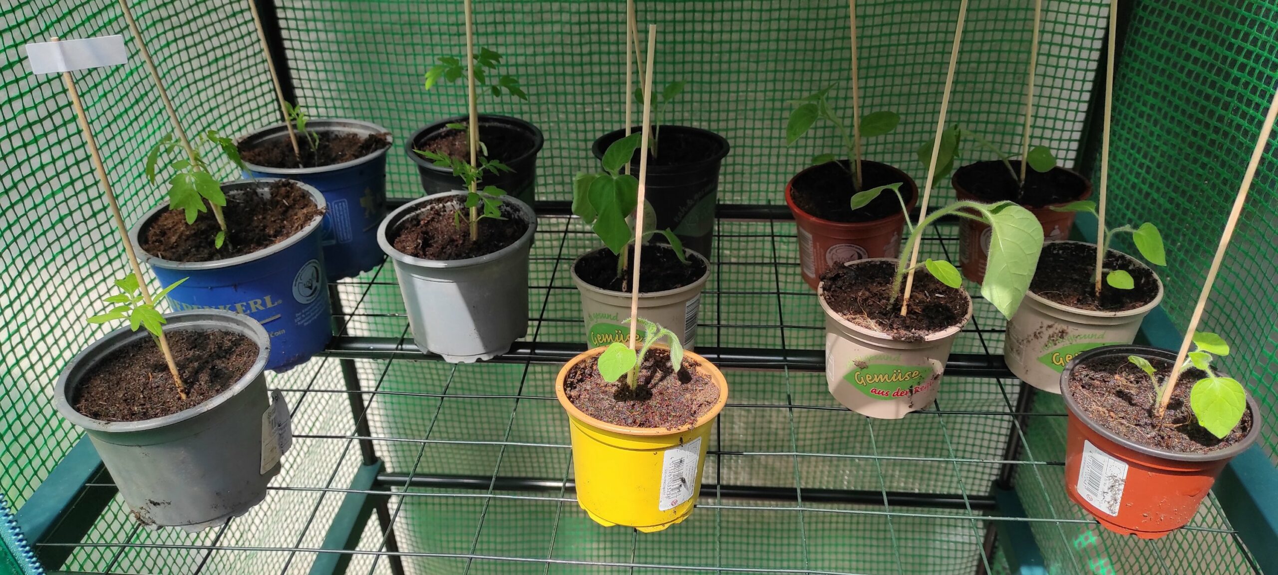 Meine Frau hat nachgelegt, bzw wir haben die schon nachgezogenen Pflanzen in größere Töpfe ausgepflanzt.