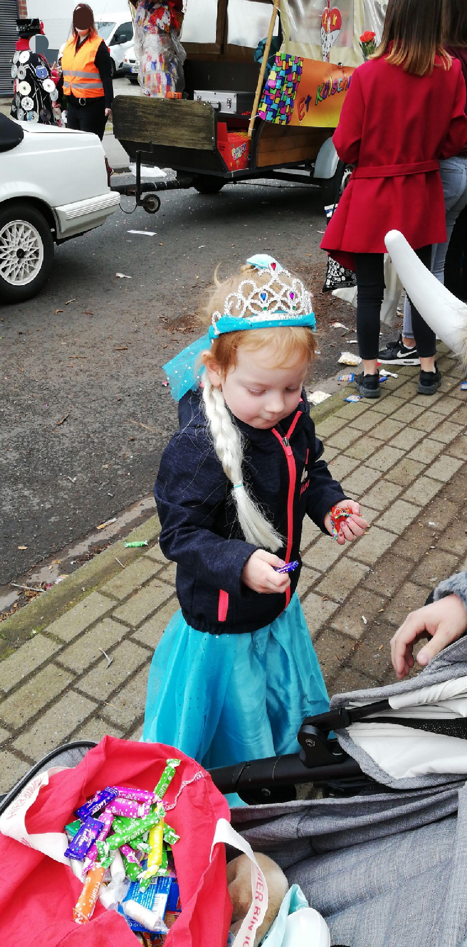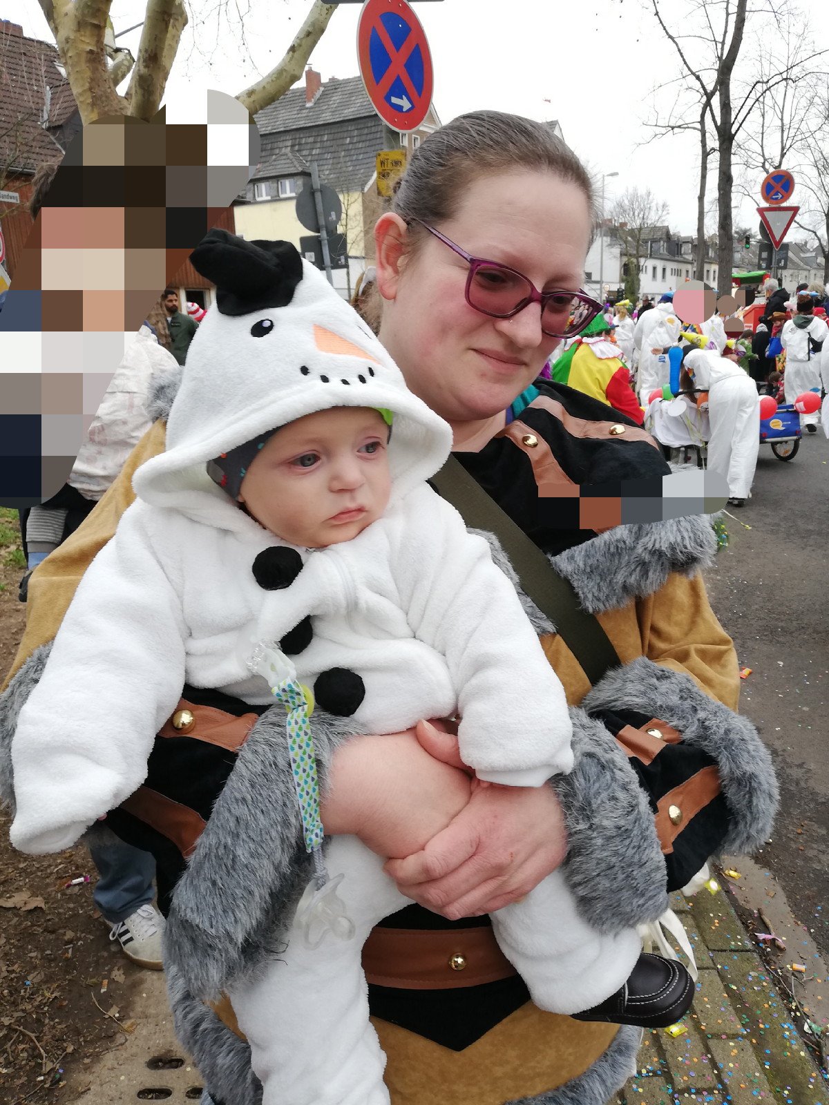 Wir waren am Ossendorfer Veedelszoch. Meine Frau und ich als Vikinger, Melina als Prinzessin und Mailo als dazugehörenden Schneemann.
