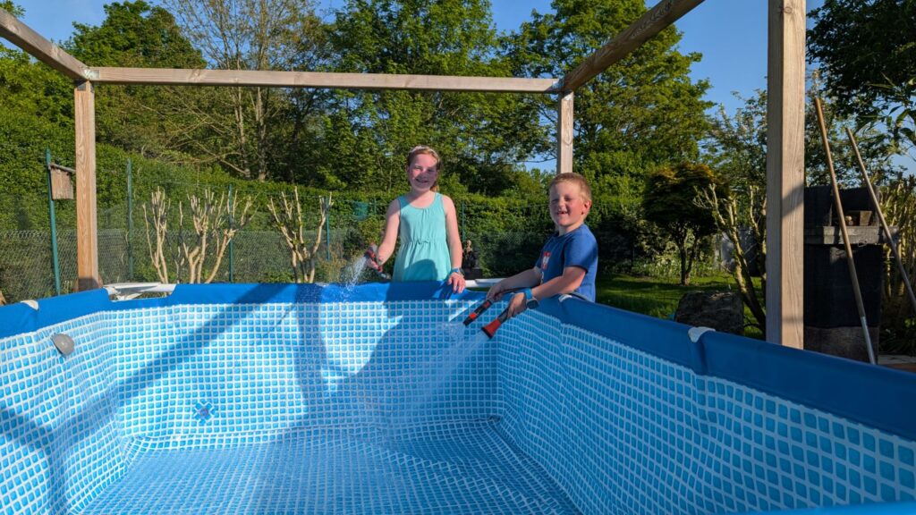 Heute war es soweit, wir haben den Pool aufgebaut und gefüllt.