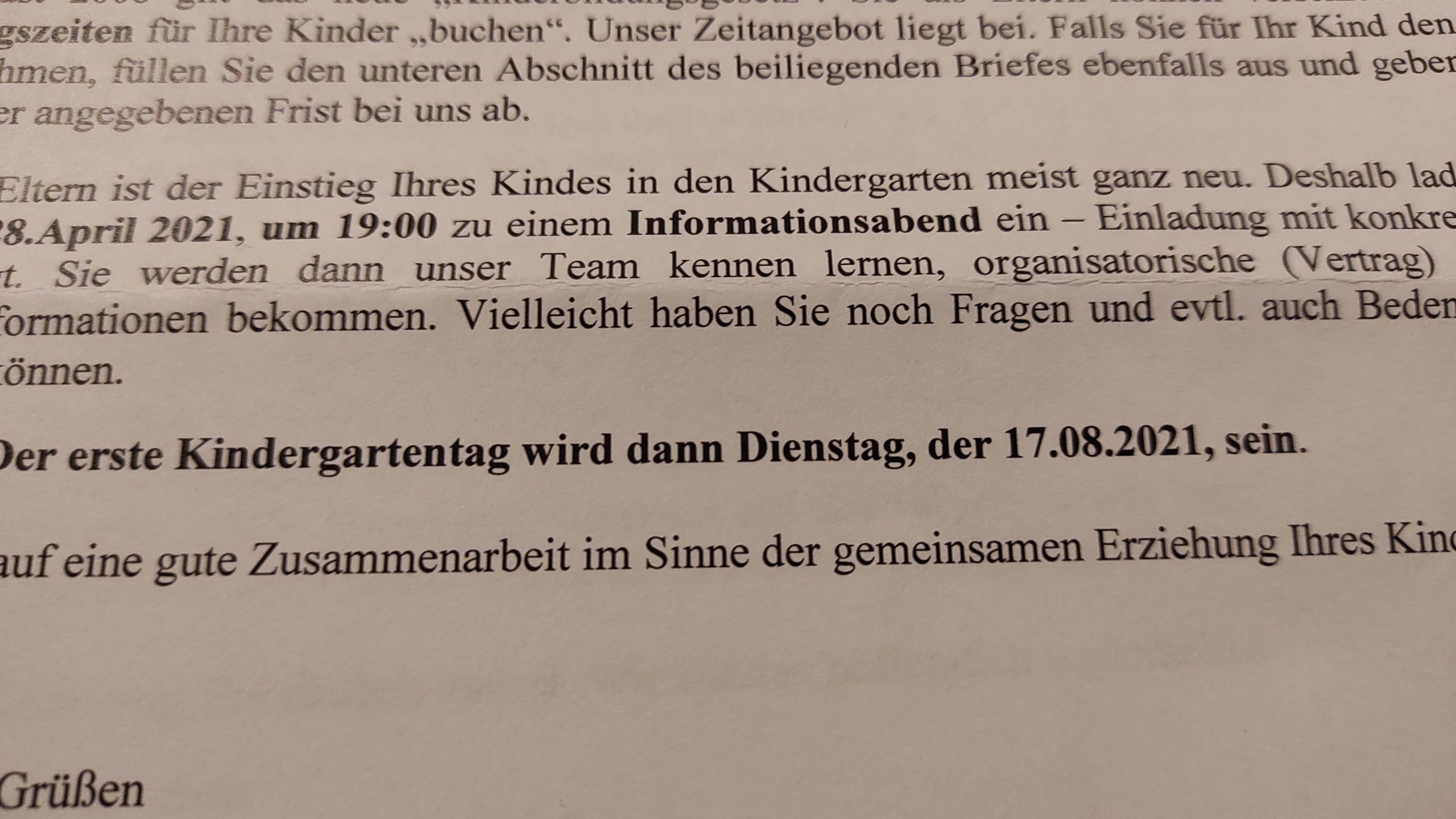 Wir haben gestern den Bescheid über den „neuen“ Elternbeitrag für Mailos Kita erhalten.