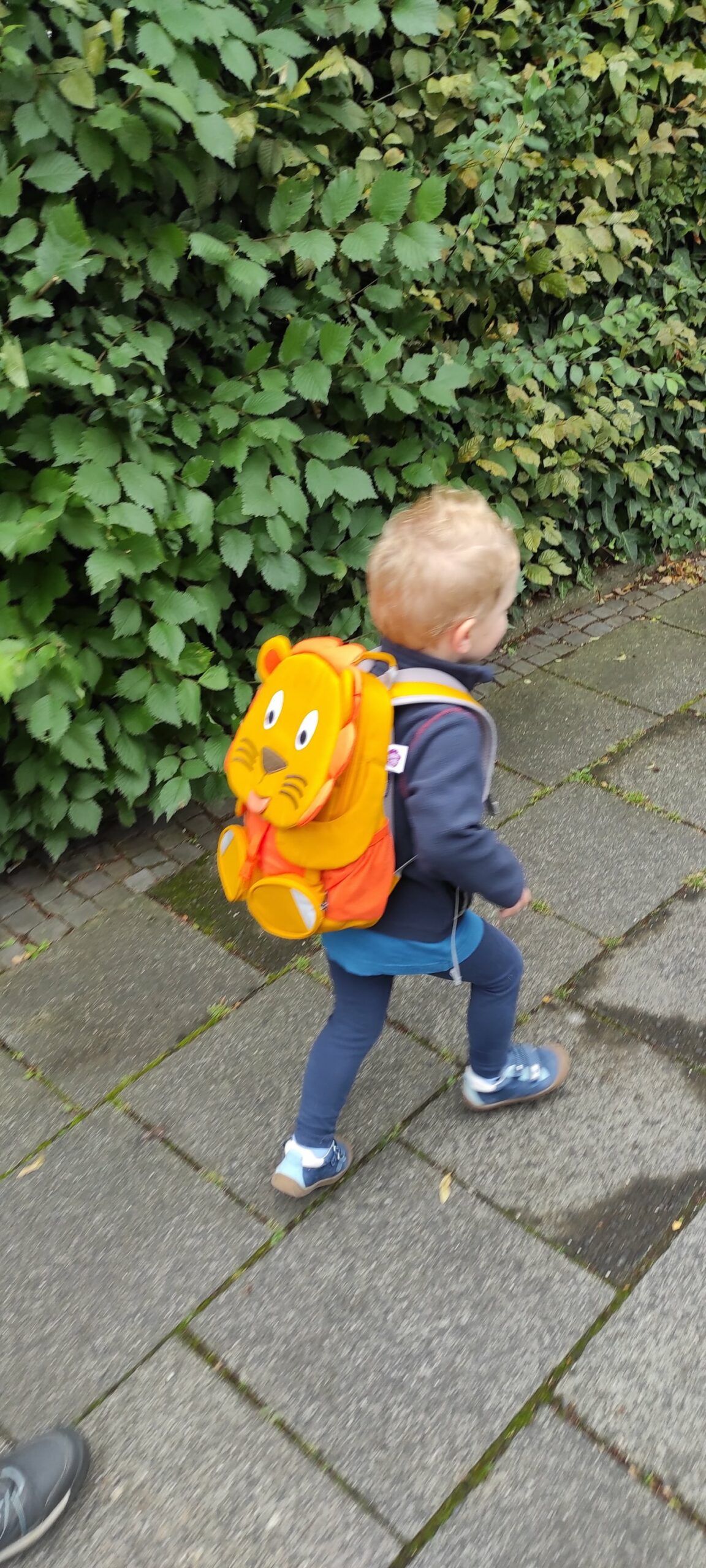 Im Kindergarten brachte meine Frau Mailo in seine Gruppe und er begann direkt zu spielen. Nach einer Stunde haben wir Mailo wieder abgeholt, die Kinder waren im Freigelände und spielten. Mailo natürlich auch. Er war so mit spielen beschäftigt das er gar nicht mit nach Hause wollte.