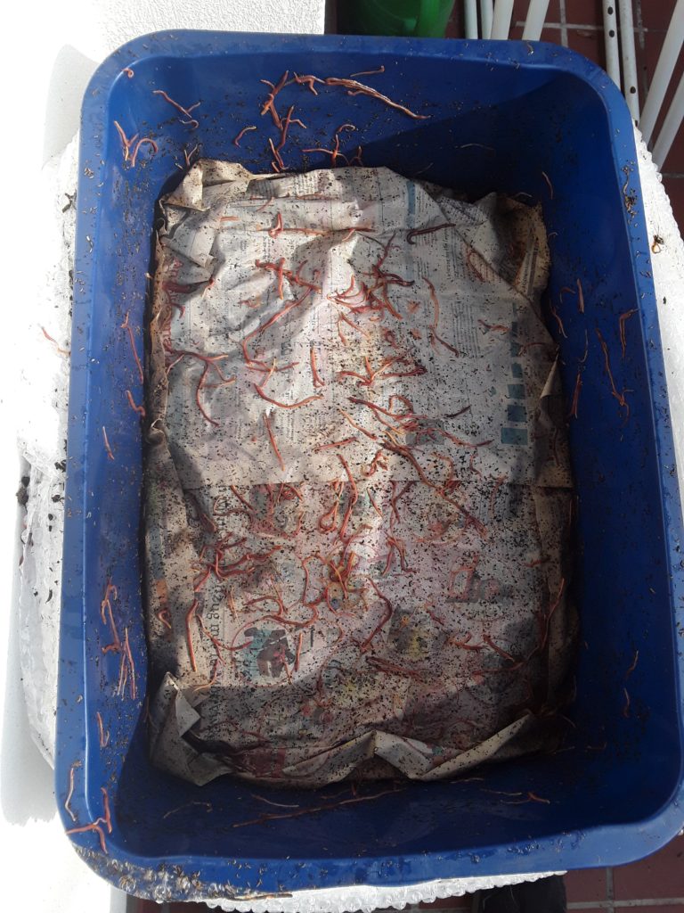 Ich habe die obere Kiste runter genommen in der es viele Würmer gab. Die untere Kiste war tot.
