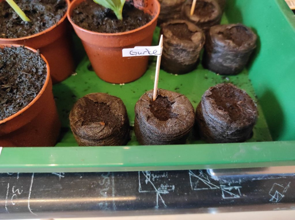 Nach der gelungenen Vereinzelung haben wir die Pflänzchen in große Kübel umgepflanzt wo die Pflänchen zu richtigen Pflanzen heran wachsen können.