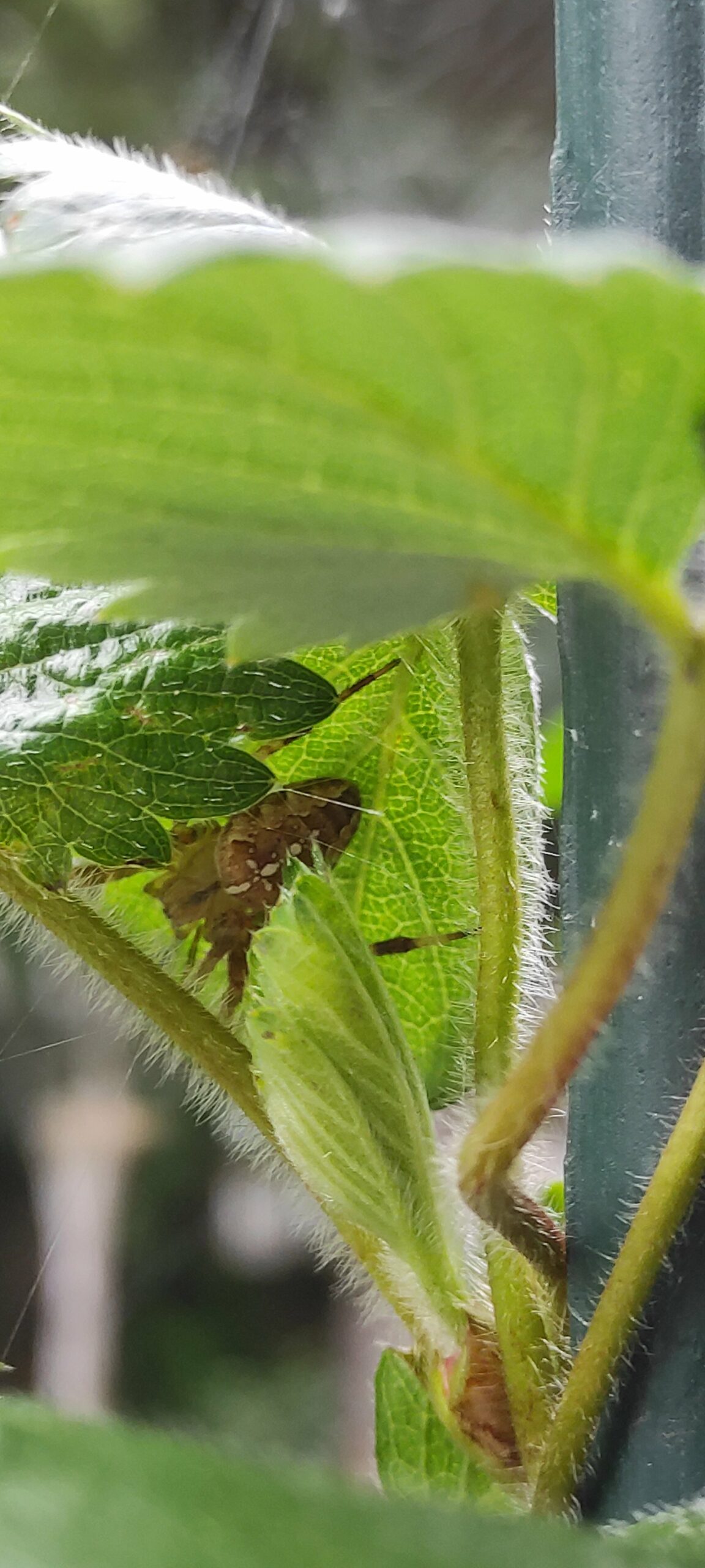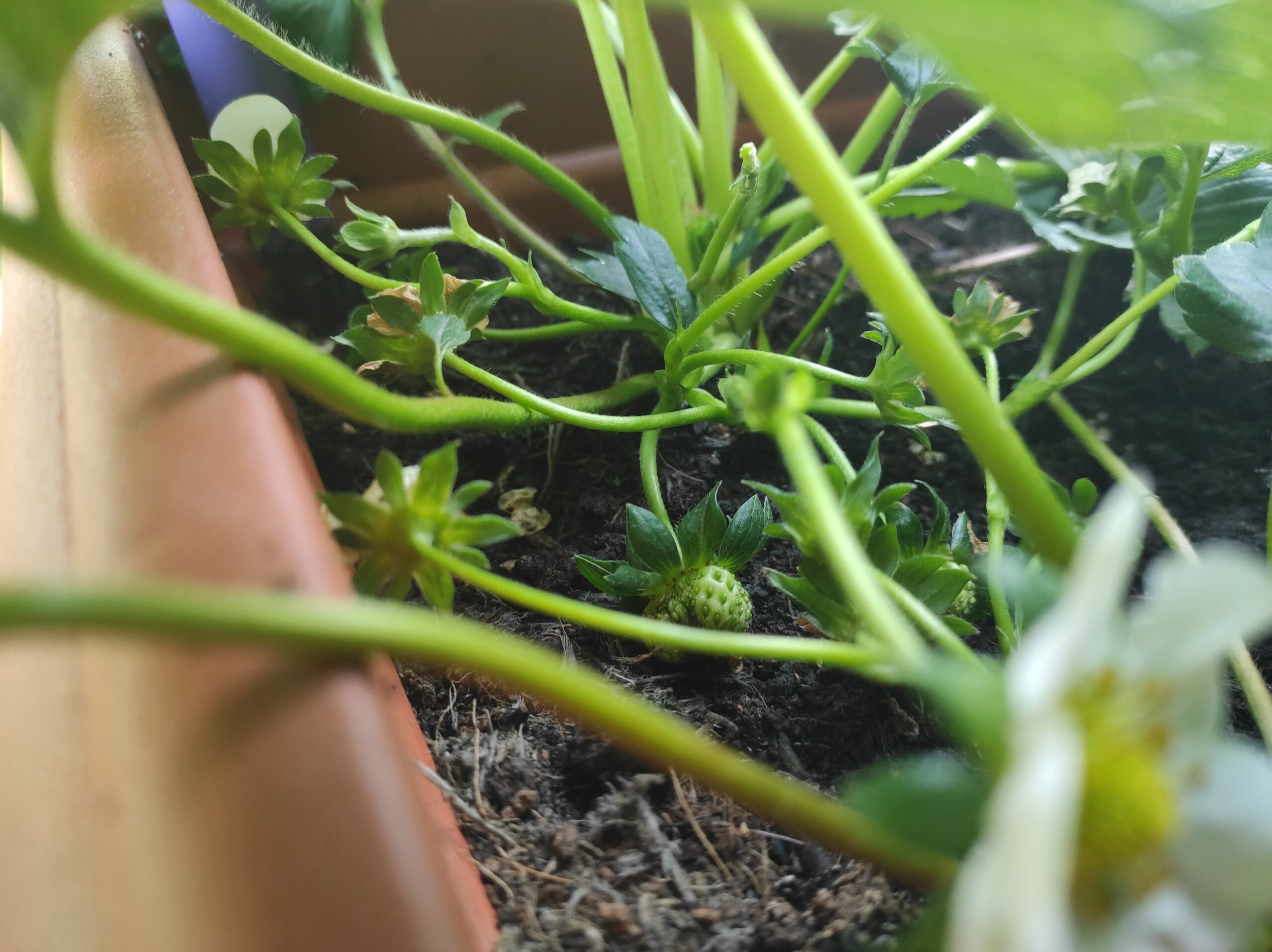 Gerade habe ich in unserer Klettererdbeere einen netten Mitbewohner gefunden.