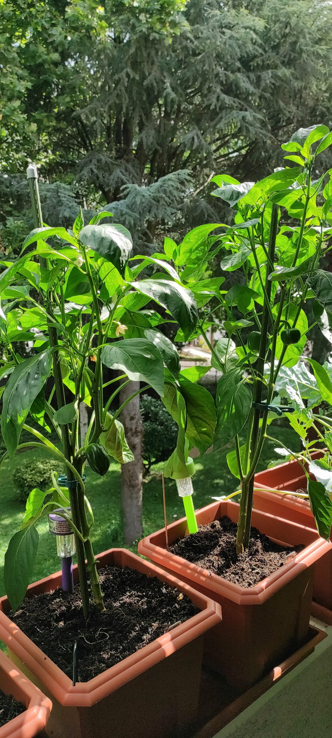 Unserer Paprikapflanze geht es an ihrem Urlaubsort in unserem Treppenhaus so richtig gut.