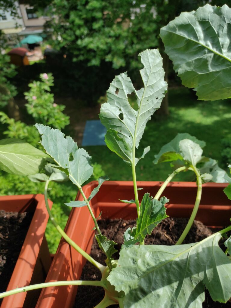 Achso der Kohlrabi ist auch ganz gut dabei, hat aber mit dem Kohlseidling zu kämpfen.