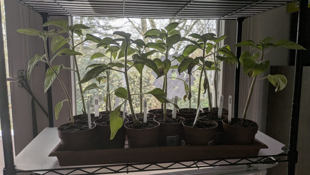 Das ist der aktuelle Stand bei unseren Zucchini und den Sonnenblumen.