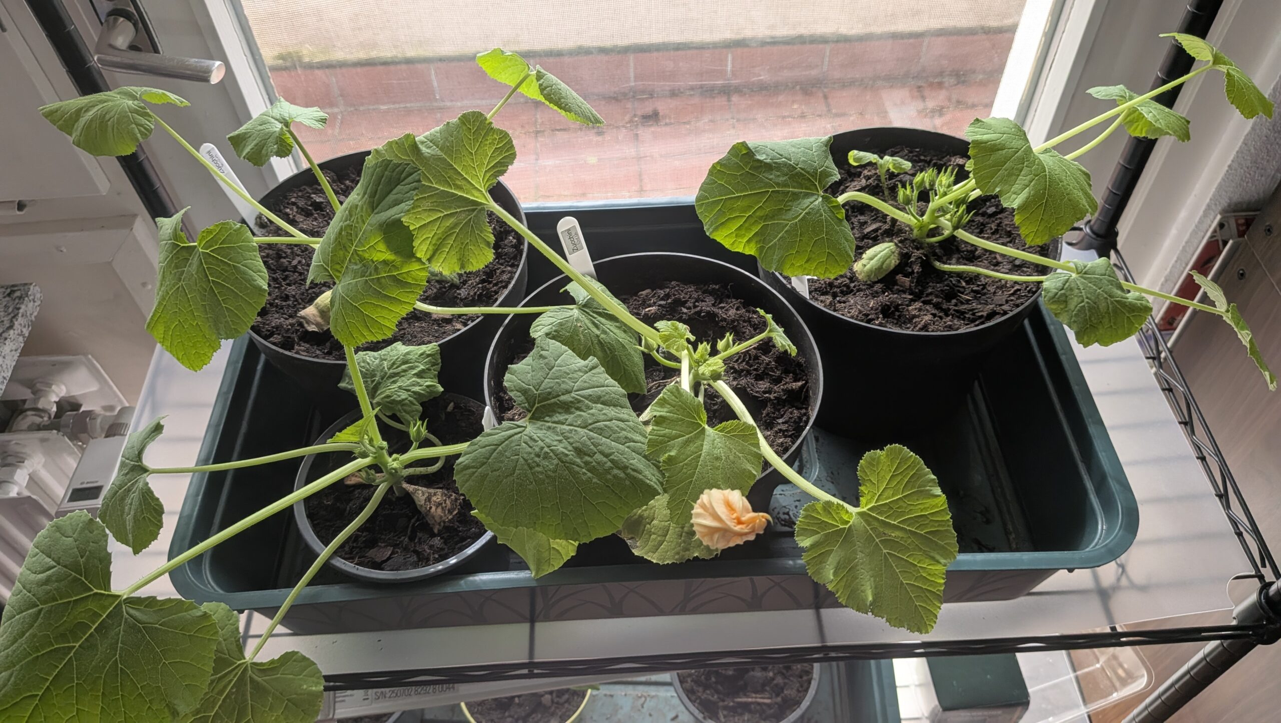 Das ist der aktuelle Stand bei unseren Zucchini und den Sonnenblumen.